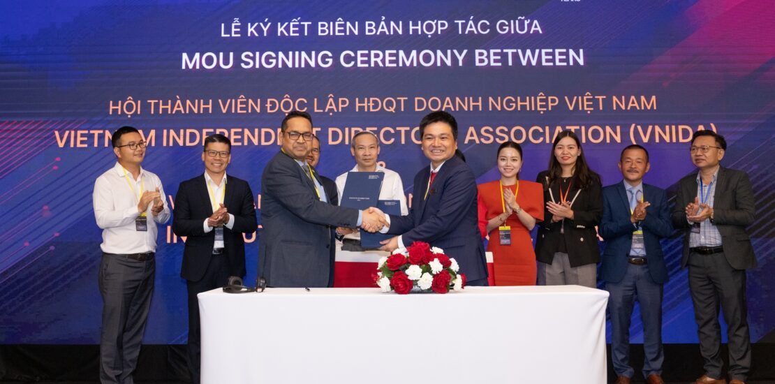 Hồ Chí Minh, ngày 18 tháng 7 năm 2025– Hội Thành viên Độc lập Hội đồng Quản trị Doanh nghiệp Việt Nam (VNIDA) và Viện Thành viên Hội đồng Quản trị Ấn Độ (IOD India) đã chính thức ký kết Biên bản Ghi nhớ (MoU) tại sự kiện Diễn đàn Thành viên HĐQT Độc lập 2025, đánh dấu một bước ngoặt quan trọng trong tiến trình hợp tác khu vực nhằm nâng cao chuẩn mực quản trị công ty.