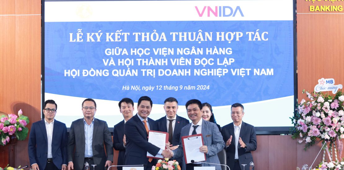 Chiều ngày 12/09/2024, tại Hội trường 310A nhà A1, Hội Thành viên độc lập Hội đồng quản trị doanh nghiệp Việt Nam (VNIDA) và Học viện Ngân hàng (HVNH) đã ký kết hợp tác và phát động chương trình “Ươm mầm tài năng khởi nghiệp, đổi mới sáng tạo trong lĩnh vực Fintech”.
